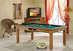 Ligne design. Finition merisier + inox. Verre sablé vert, version table.